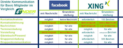Facebook strahlt auf den ersten Blick sicher mehr Kommunikationskompetenz für NICHTZAHLENDE Mitglieder aus. Insbesondere durch die Tatsache, das Private Nachrichten für alle Mitglieder möglich sind. Auf meinen zweiten Blick, kann ich weder bei der einen, noch der anderen Plattform echte Sozialkompetenz in der Kommunikation entdecken.